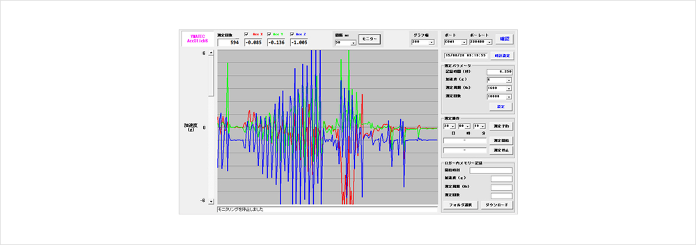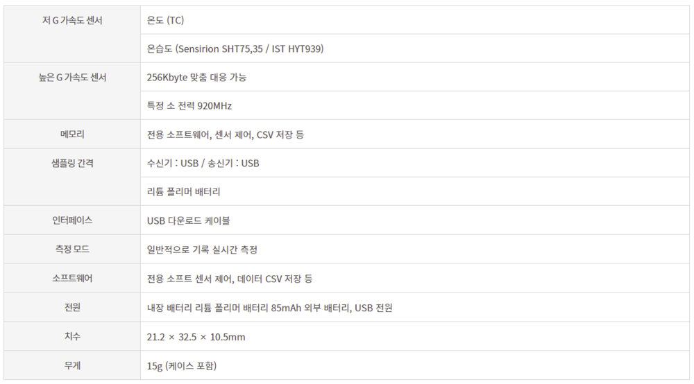 ∙ 사용 센서의 전환 : ± 2G, ± 4G, ± 6G, ± 8G, ± 16G, ± 100G, ± 200G, ± 400G 16G 센서, 400G 센서 2 개의 센서를 탑재하여 센서 설정 기능으로 자동 전환. 진동 낙하 등 사용 용도가 확대