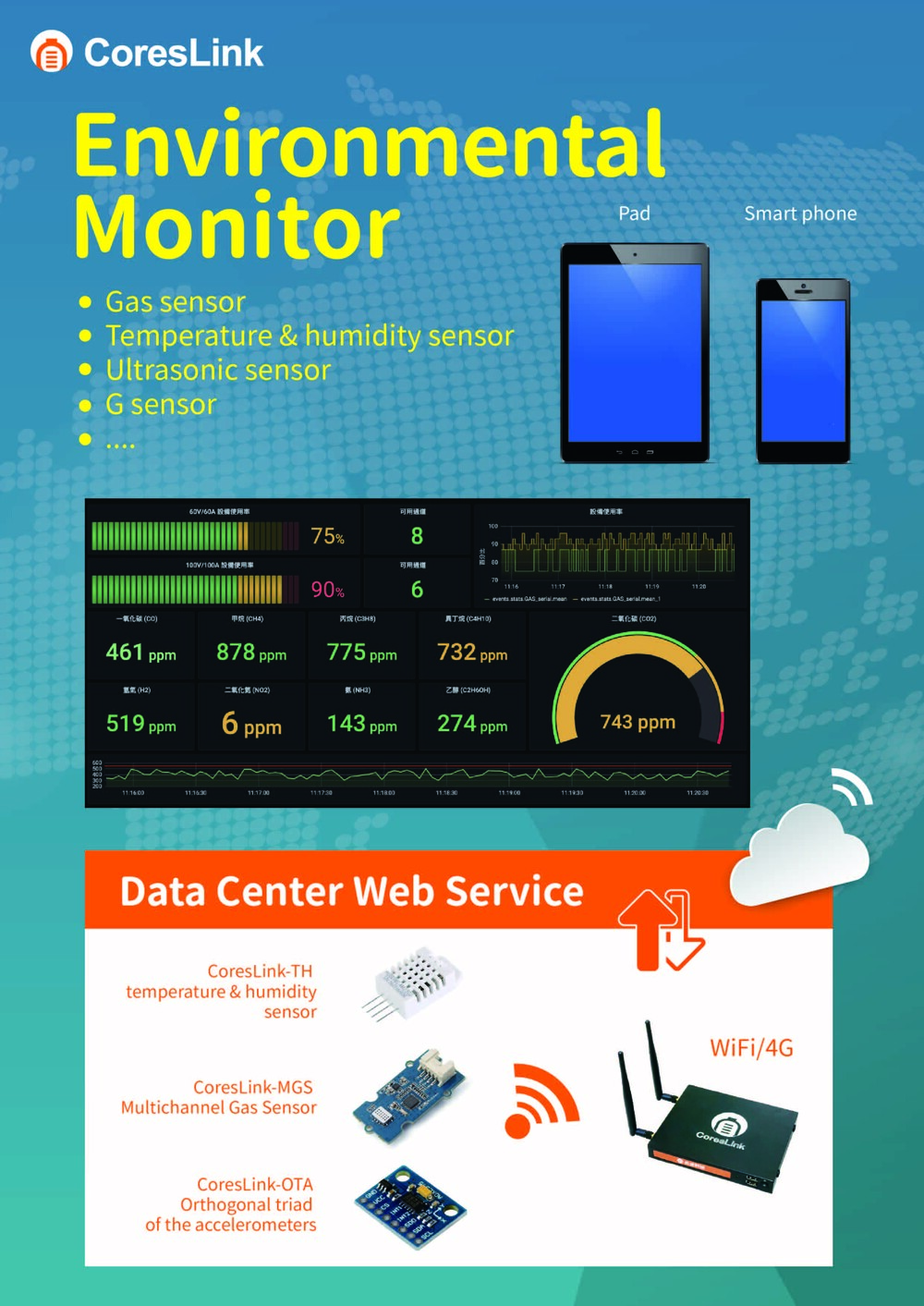 가스 센서, 온습도센서, 가속도 센서 등의 각종 센서의 원격 모니터링이 가능 합니다.