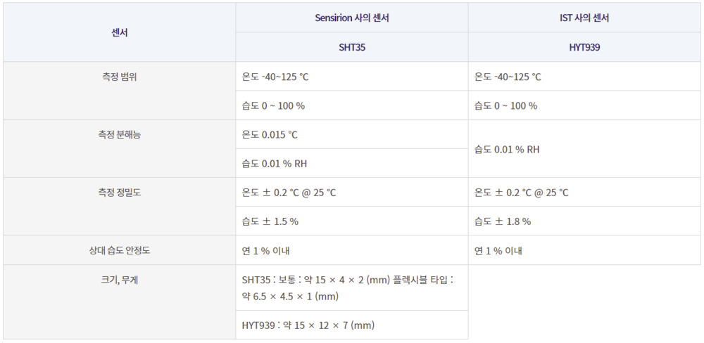 높은 습도 환경에 장기간 노출 된 경우에도 안정적인 데이터 취득이 가능한 센서입니다.